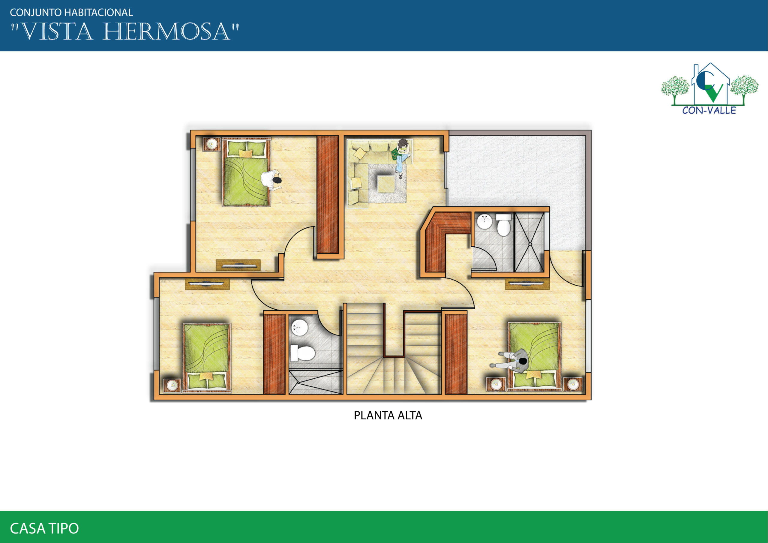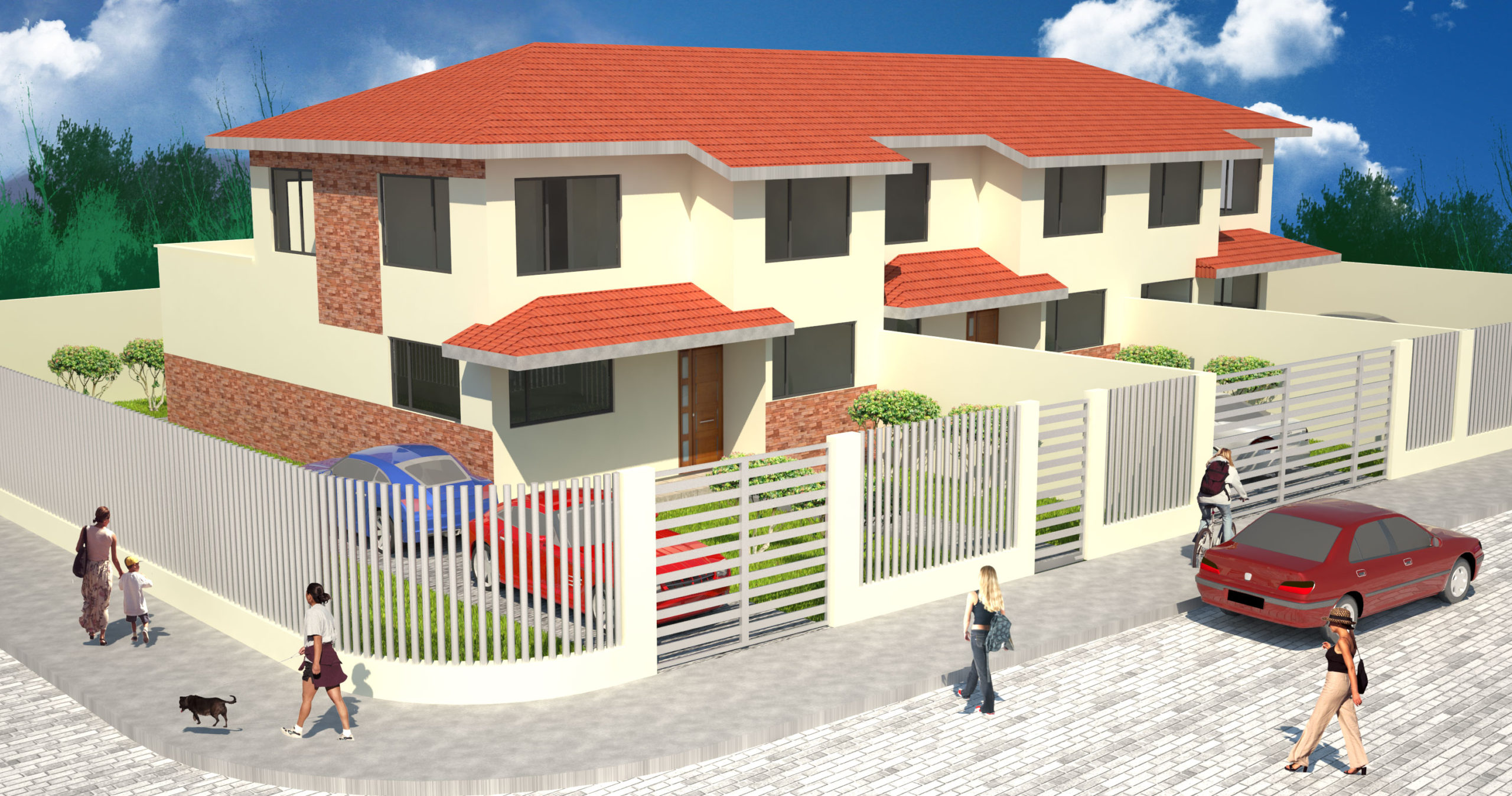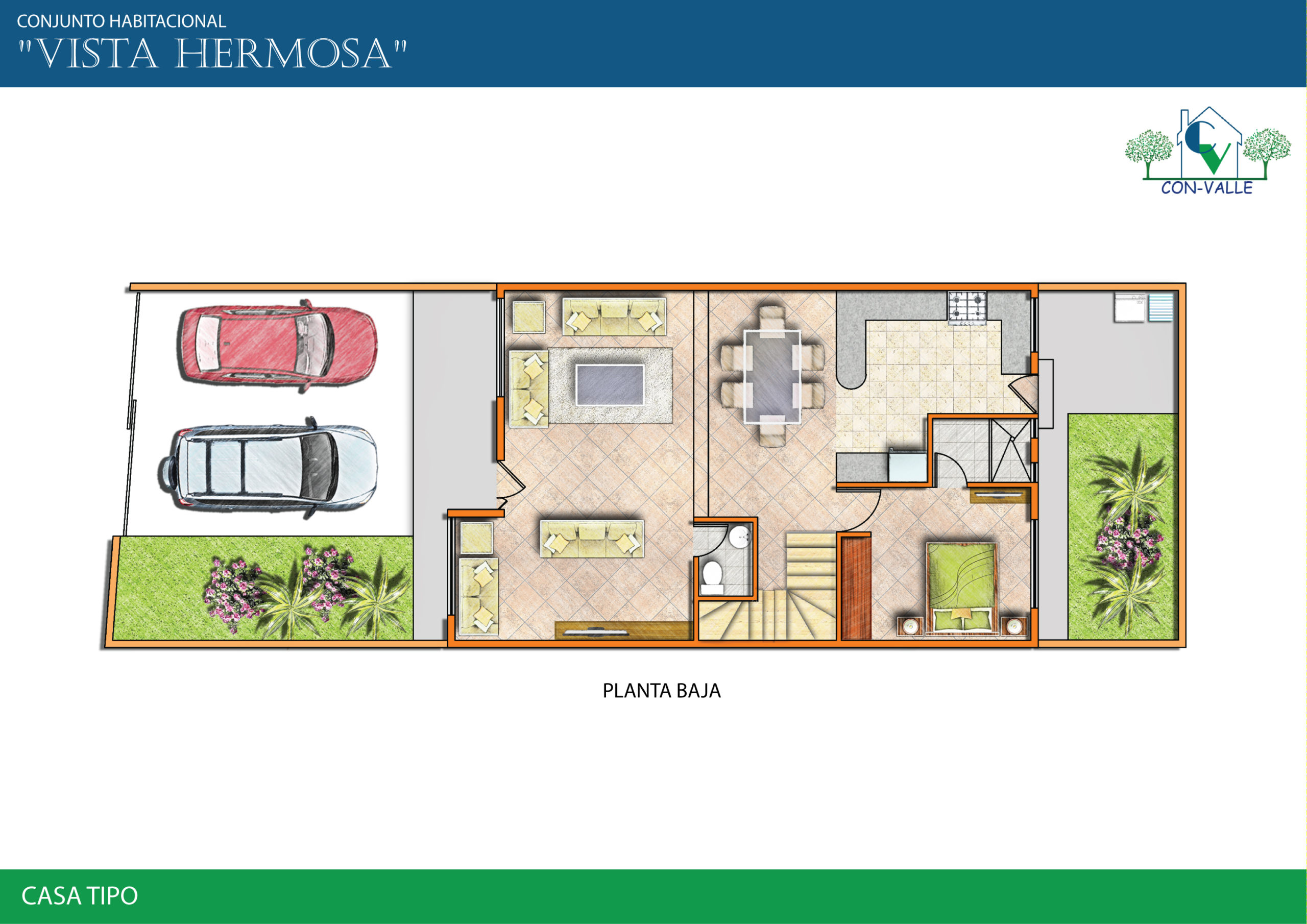 Casas de 160m2 de construcción en 2 plantas con 4 dormitorios, 2 parqueaderos, área de máquinas, patio delantero y posterior independientes.